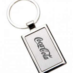 Descrição: Chaveiro de metal retangular de frente e verso liso, possui anel no centro e cordão emborrachado.