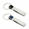 Chaveiro metal com detalhe de couro sintético para brindes empresariais com estilo.